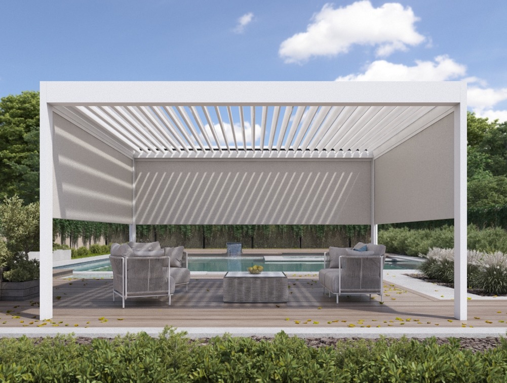 Als Teil der Serie innovative Durchdacht-Produkte führen wir nun in unserem Sortiment die freistehende Pergola. Optional kann diese auch an der Wand montiert werden. Das konstruktive Material Aluminium wird durch Lamellen ergänzt, die hervorragenden Sonnenschutz bieten. Vor allem für Verfechter moderner Architektur wird unsere AirCube Pergola sich gut in die Umgebung Ihrer Gartenlandschaft einfügen. Die beliebten Zipscreens können sowohl bei der freistehenden Variante als auch bei der Pergola mit Wandmontage montiert werden. Ebenso können die Zipscreens bei unseren herkömmlichen Überdachungen verbaut werden. Die Zipscreens sind in den beiden beliebten Farben weiß und anthrazit sofort lieferbar. Alle weiteren Farben können gegen einen Aufpreis geliefert werden. Unsere beiden AirCube Pergolas sind auch als Kaltwintergarten zu haben.Genießen auch Sie Ihre Abende mit Freunden und Familie in einer angenehmen Atmosphäre mit Ihrer neuen freistehenden Pergola von Durchdacht.